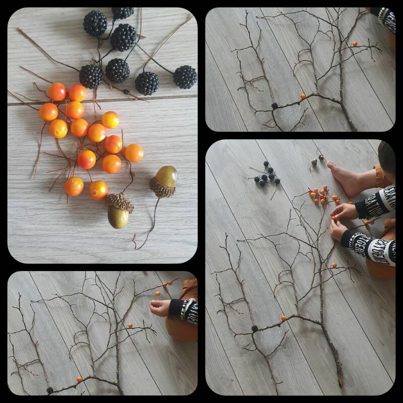 De dagen worden korter en donkerder. Bij de herfst horen ook gezellige lampjes/kaarsjes. Wij hebben buiten een mooie tak gezocht en deze versierd met allerlei herfst versiersels die we bij de action hebben gekocht. We hebben er een lichtsnoertje op baterijen in gehangen en er ontstond al een gezellig herfst sfeer in de kamer