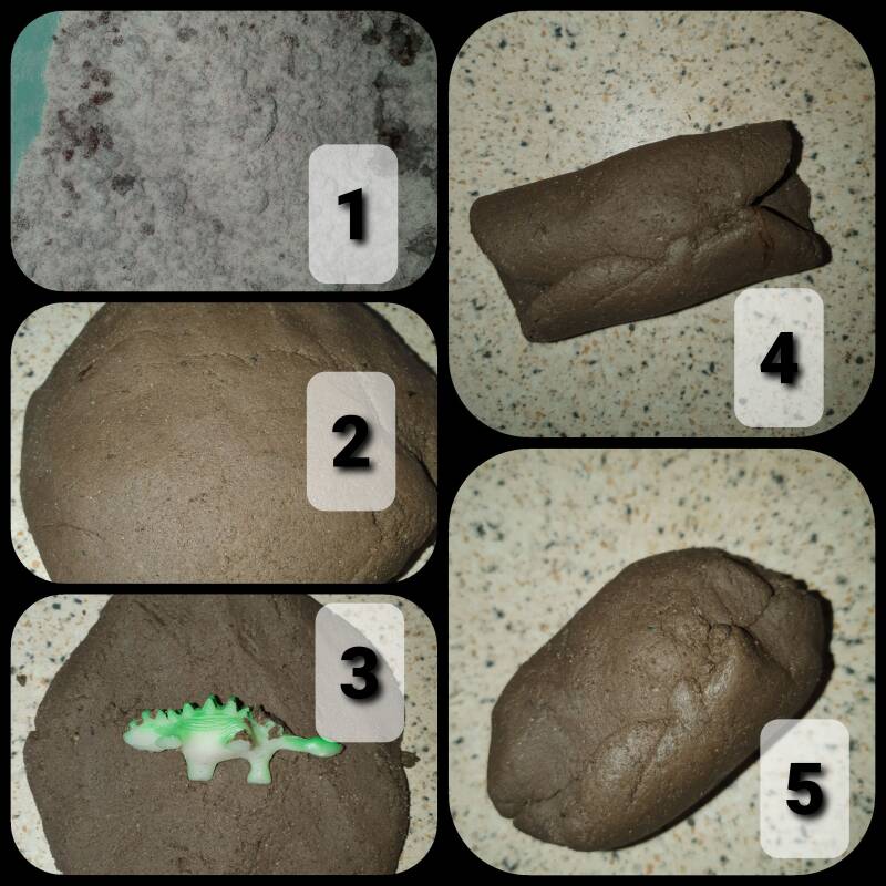Ik ben begonnen met alle droge ingrediënten te mengen in de beslag kom. Ik heb aarde uit de tuin gebruikt het was nat van de regen hierdoor had ik minder water nodig omdat er al vocht in de aarde zat. Ik had geen koffie prut dus heb gewoon oploskoffie gebruikt. Ik begreep niet helemaal wat hier de meerwaarde van was gezien het zand al kleur geeft. Daarom heb ik het bij het 2e deeg weg gelaten.Wanneer je alle droge ingrediënten heb gemengd doe je het water erbij, meng vervolgens alles samen tot een soepel deeg. Doordat mijn aarde nat was werd mijn deeg te plakkerig.Geen stress wanneer dit gebeurd voeg gewoon wat extra bloem toe.Wanneer je een soepel deeg heb kun je de eieren gaan vormen.